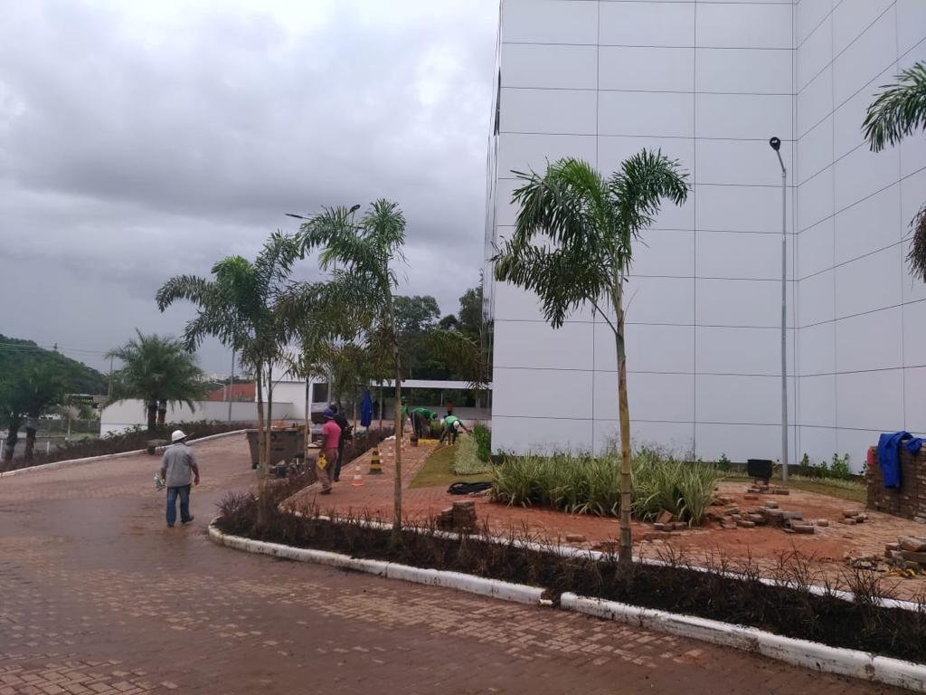 Fornecimento de mudas e execução de projeto para Unimed Juiz de Fora. O projeto contou com plantas ornamentais para forração, maciços e canteiros, além de palmeiras.